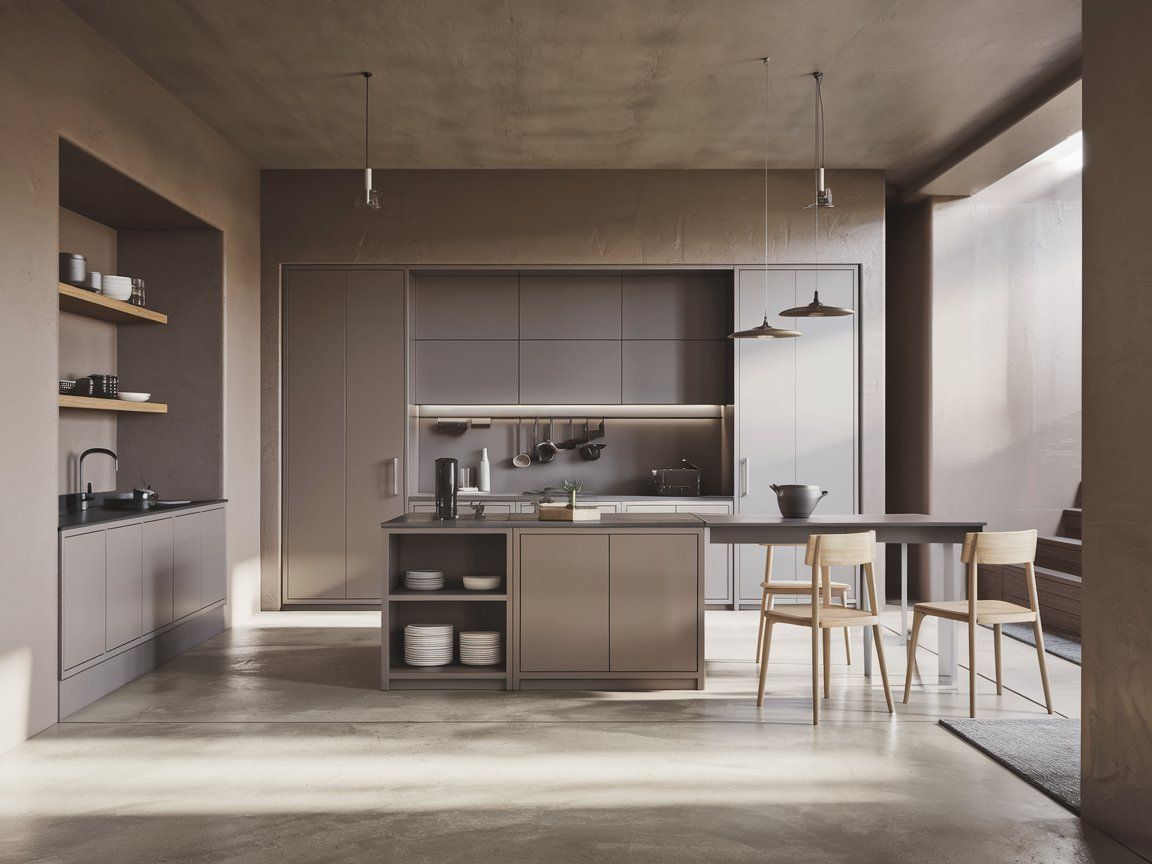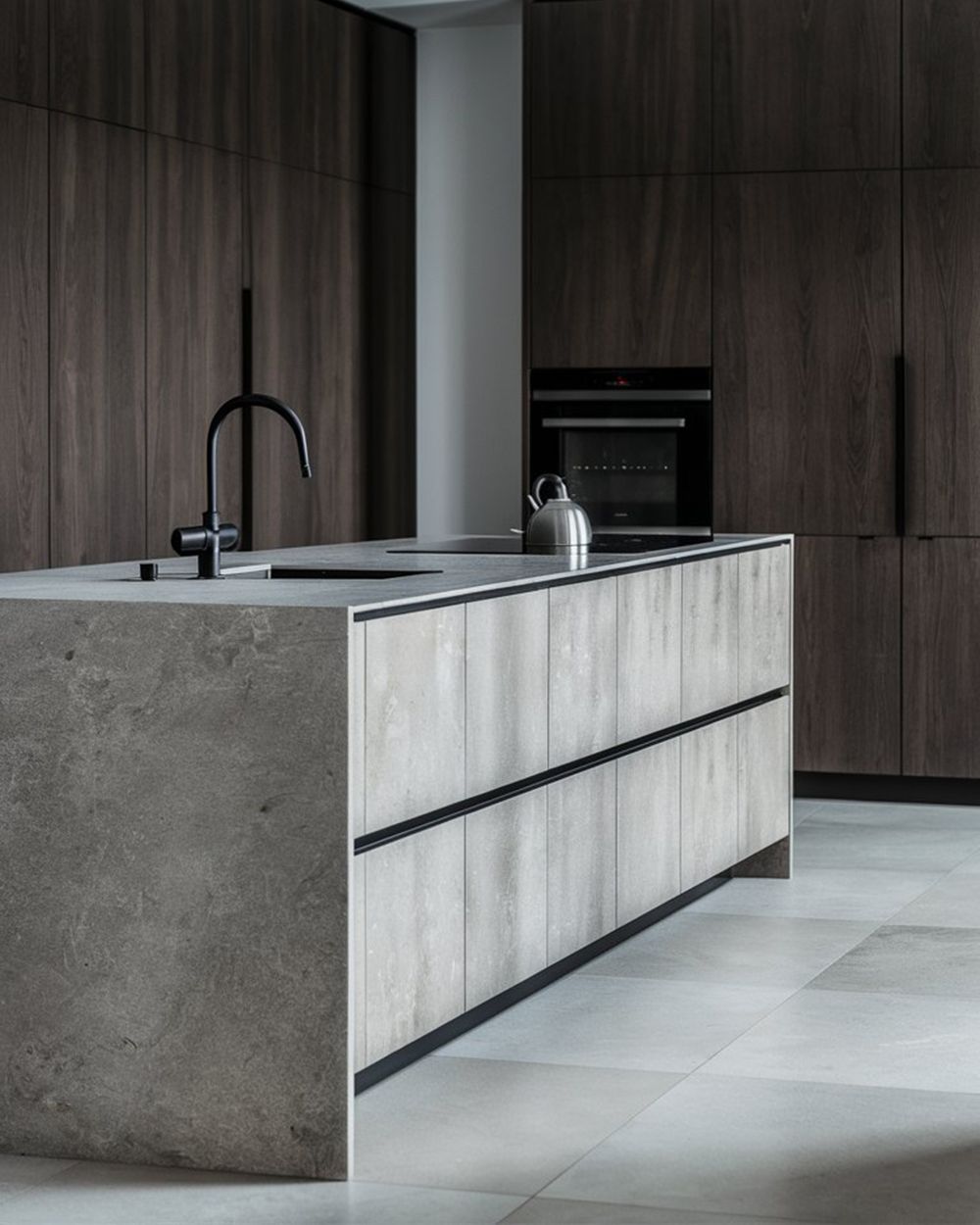 Trendy Coloration Mixture: Oak with Matte Anthracite PET and Dekton “Kelya” Countertop