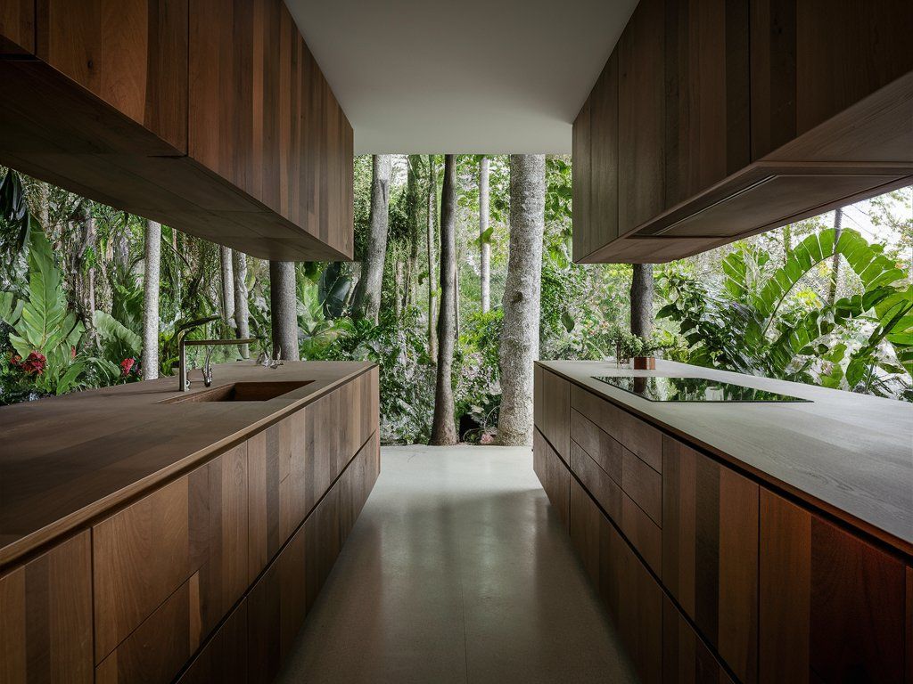 Tropical Ambiance: Teak with Matte Mocha Lacquer and Diresco “Moka” Countertop