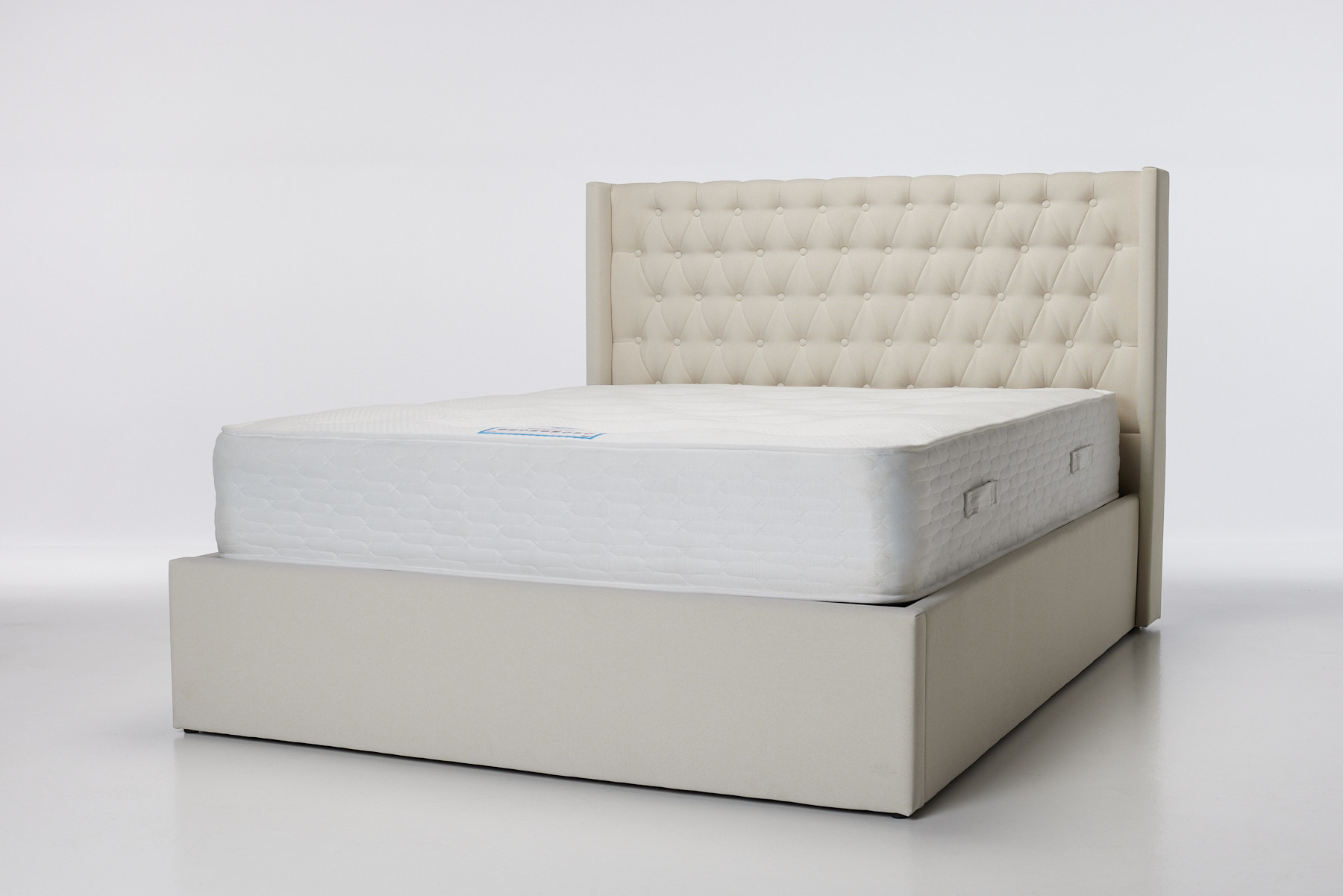Fleur Sprung 4ft6 Double Upholstered Ottoman Mattress, Cream Linen Material (£479)