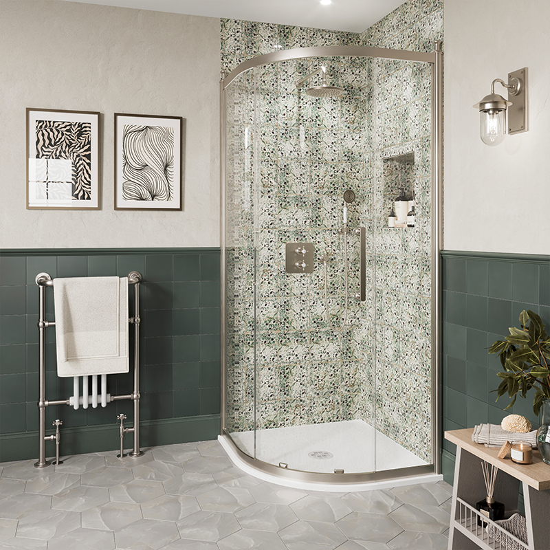 For a nook bathe that saves on house however doesn’t compromise on class, go for a quadrant bathe. This curved design reduces the ground house used whereas nonetheless offering loads of room inside the enclosure.