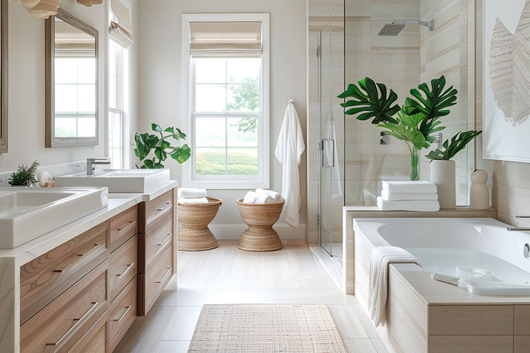 - Traits: Spa-inspired loos provide a tranquil sanctuary for rest and self-care, combining clear strains, pure supplies, and soothing hues to create a way of concord and steadiness. The main target is on making a serene and alluring house that promotes rest and rejuvenation.
