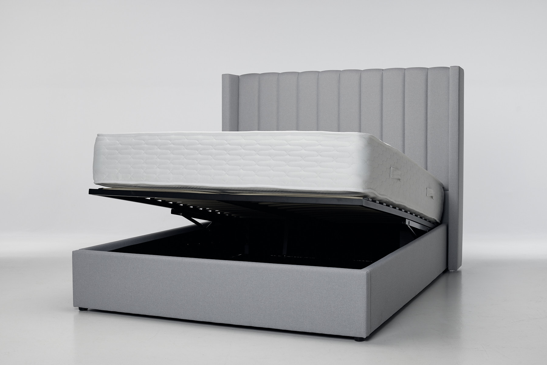 Amara 4ft6 Double Carry Up Storage Ottoman Mattress, Gentle Gray Linen Cloth (£479)