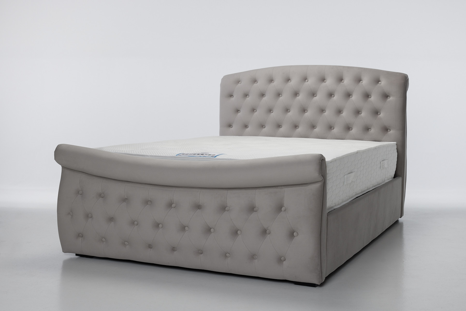 Celine 4ft6 Double Upholstered Ottoman Sleigh Mattress, Plush Silver Velvet (£499)