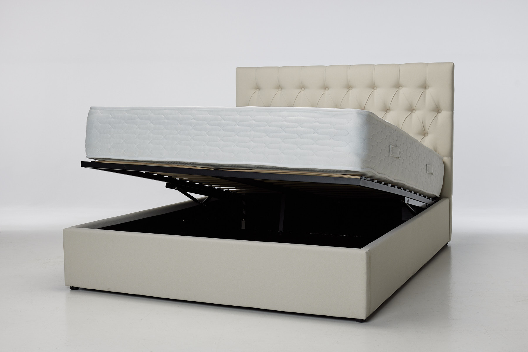 Alessi 4ft6 Double Carry Up Storage Ottoman Mattress, Cream Linen Material (£429)